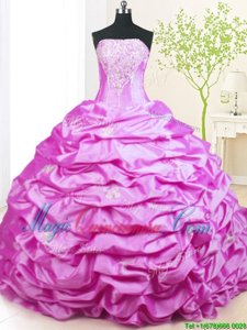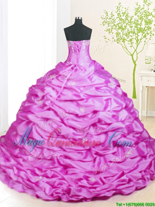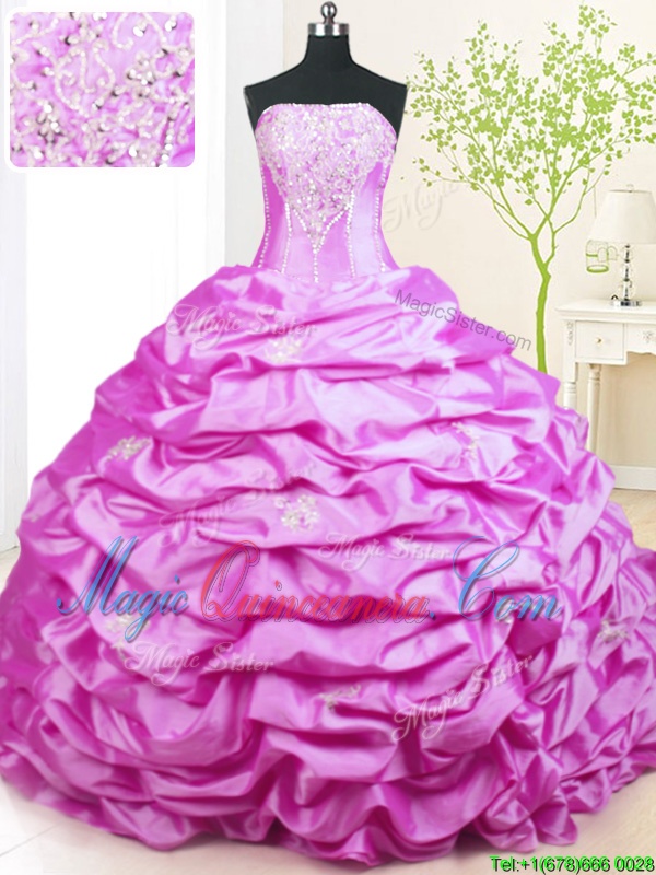 Lilac Ball Gowns Strapless Sleeveless Taffeta With Train Sweep Train Lace Up Beading and Pick Ups Sweet 16 Quinceanera Dress
