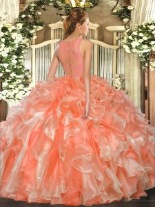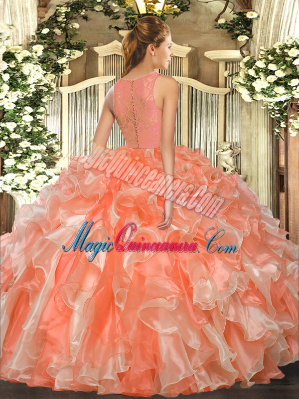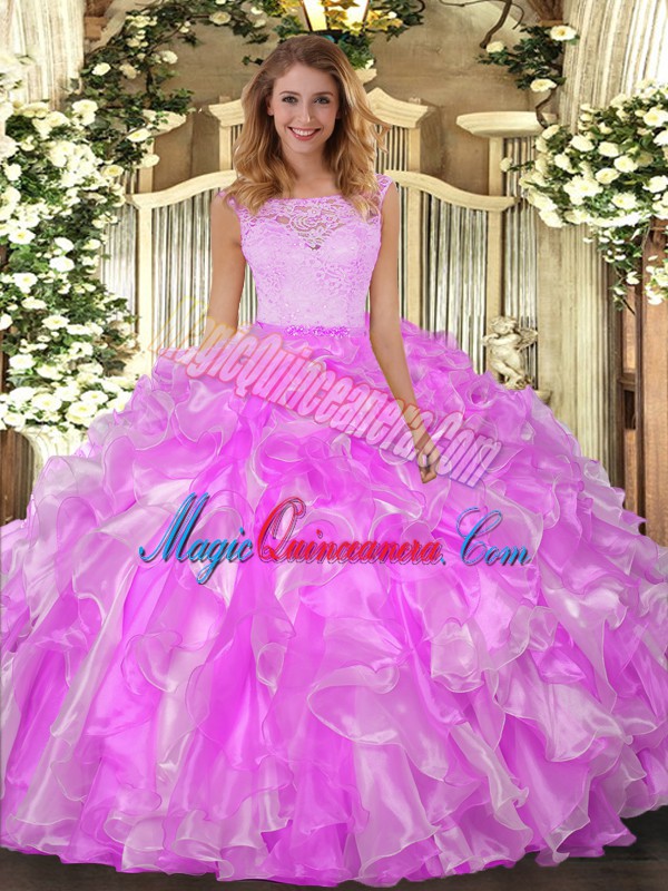 Lilac Clasp Handle 15th Birthday Dress Lace and Ruffles Sleeveless Floor Length