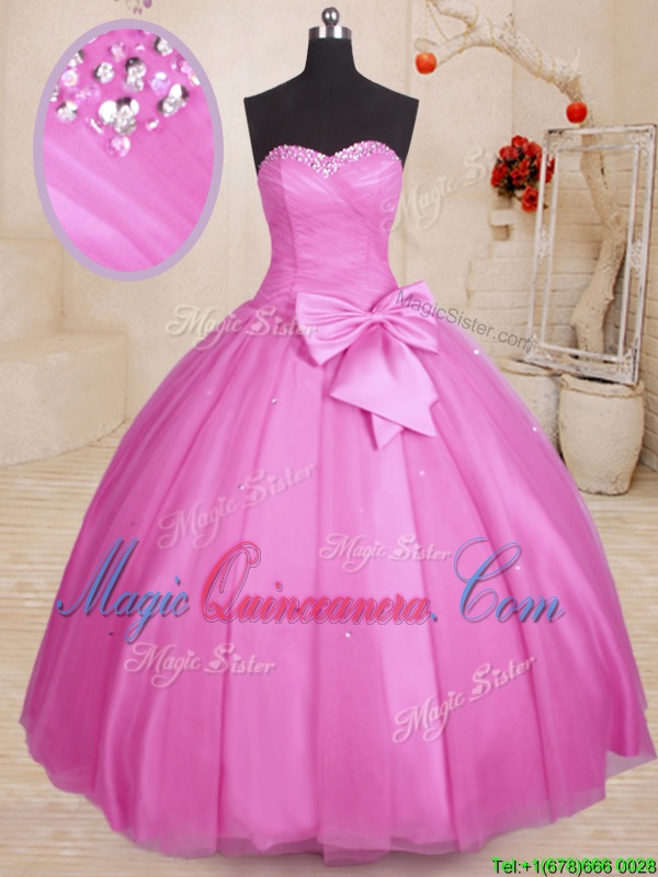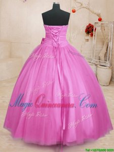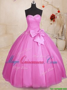 Lilac Sleeveless Floor Length Beading and Bowknot Lace Up 15th Birthday Dress