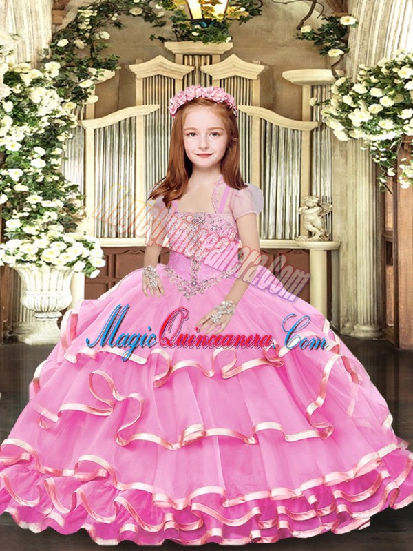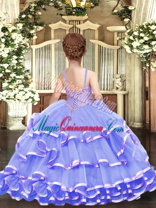 Lilac Sleeveless Floor Length Beading and Ruffled Layers Lace Up Child Pageant Dress