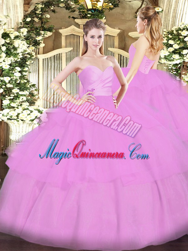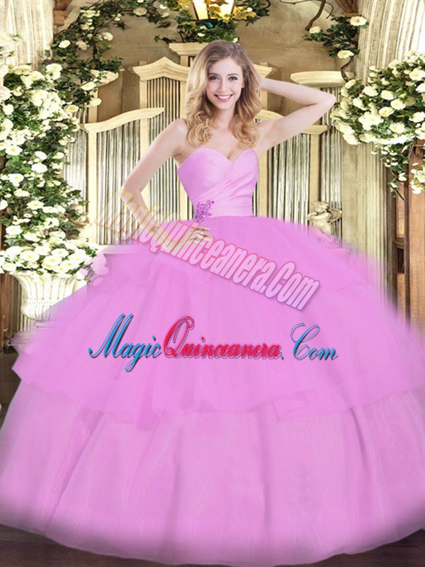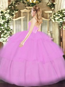 Lilac Sleeveless Floor Length Beading and Ruffled Layers Lace Up Quinceanera Dresses
