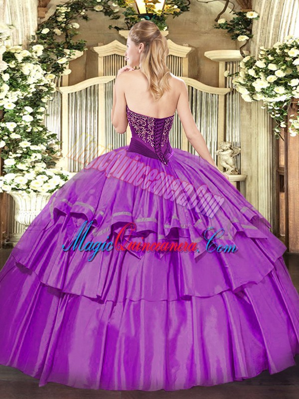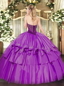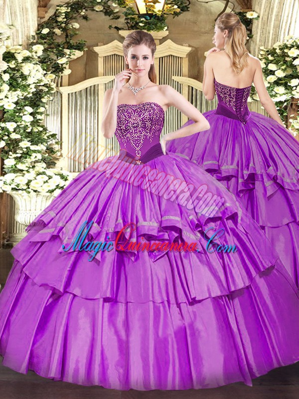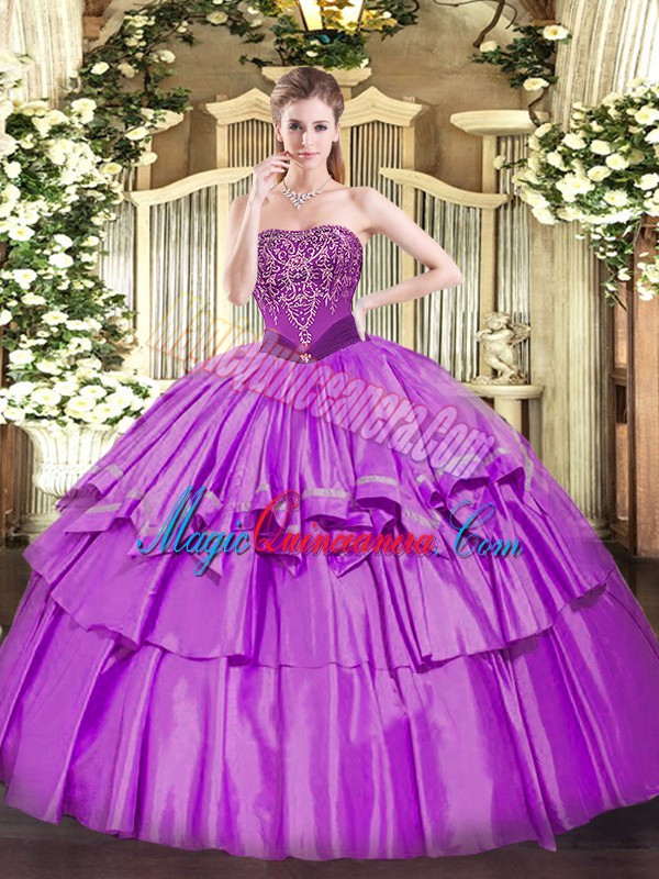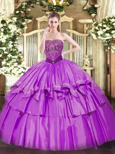 Lilac Strapless Lace Up Beading and Ruffled Layers Quinceanera Gown Sleeveless