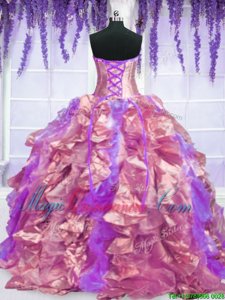 Lilac Strapless Neckline Embroidery and Ruffles Quince Ball Gowns Sleeveless Lace Up