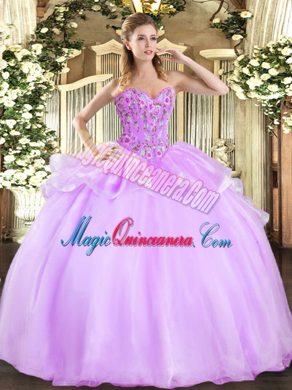 , Lilac Sweetheart Lace Up Embroidery 15 Quinceanera Dress Sleeveless