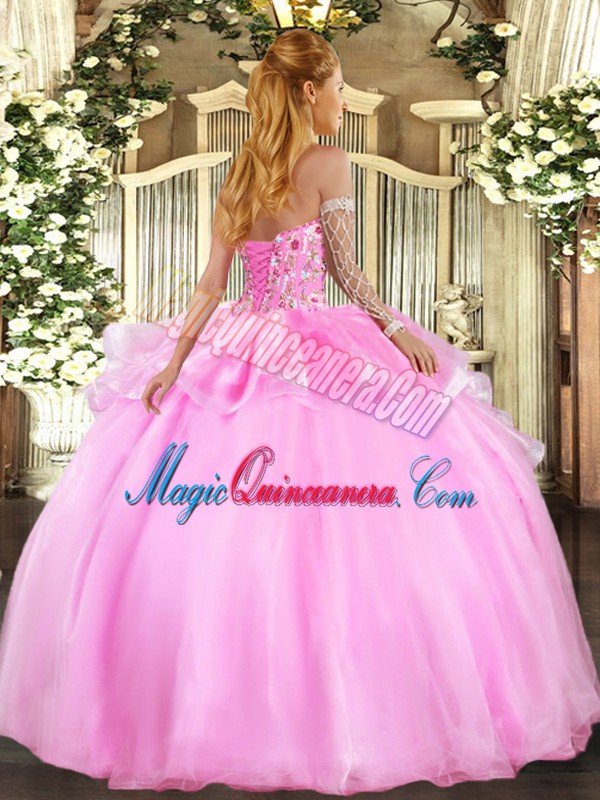 Lilac Sweetheart Lace Up Embroidery 15 Quinceanera Dress Sleeveless