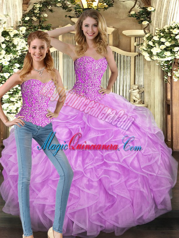 Lilac Tulle Lace Up Sweet 16 Quinceanera Dress Sleeveless Floor Length Beading and Ruffles