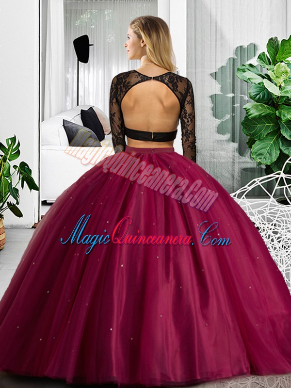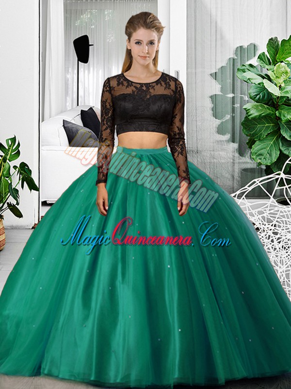 , Long Sleeves Backless Floor Length Lace and Ruching Sweet 16 Dress