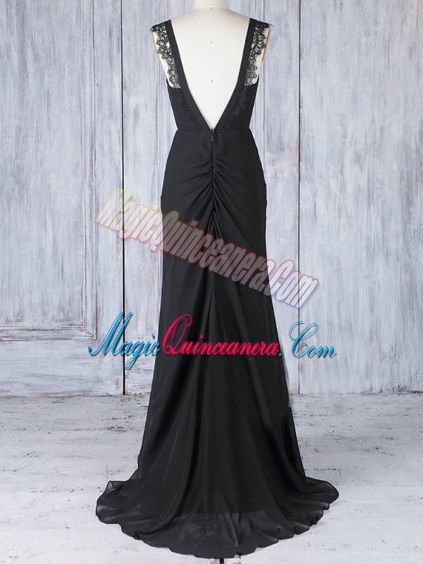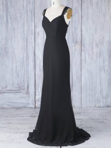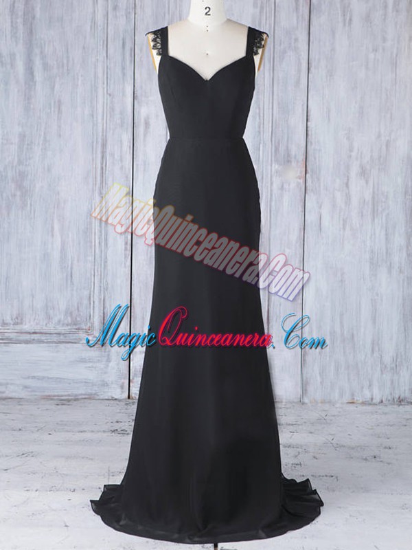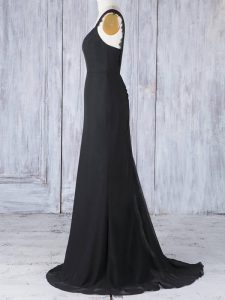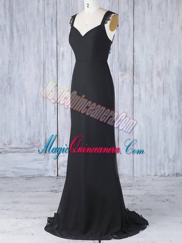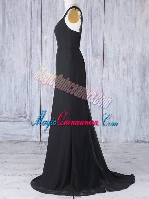 Lovely Appliques Court Dresses for Sweet 16 Black Zipper Sleeveless Sweep Train