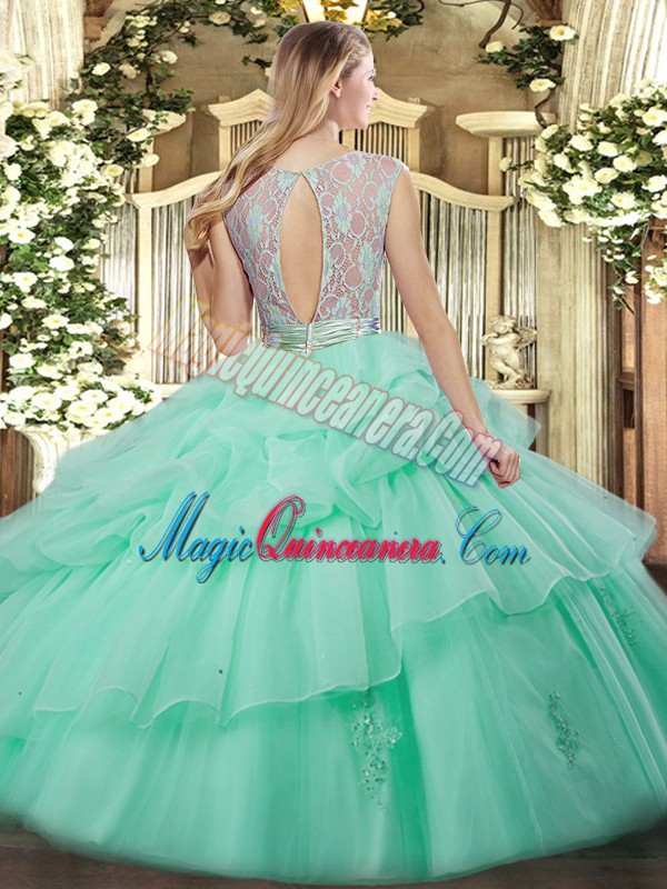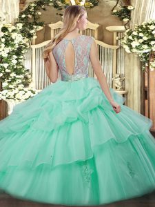 Custom Designed Apple Green Sweetheart Lace Up Beading and Ruffles Sweet 16 Dresses Sleeveless