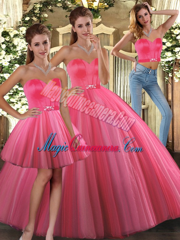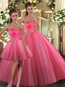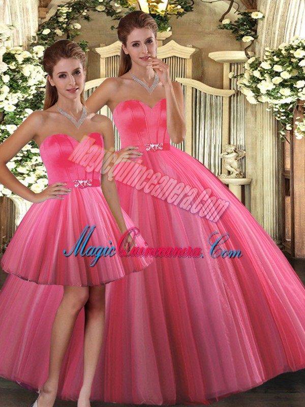 , Lovely Coral Red Lace Up Quince Ball Gowns Beading Sleeveless Floor Length