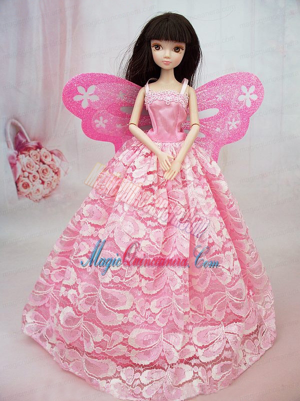 , Lovely Handmade Pink Lace To Barbie Doll Dress