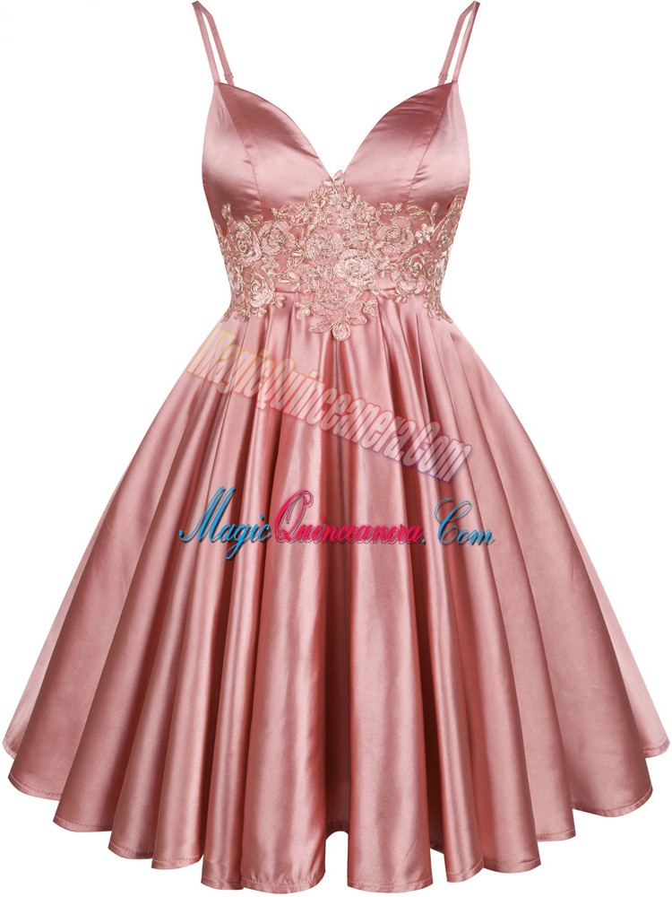 , Lovely Knee Length Pink Damas Dress Elastic Woven Satin Sleeveless Lace