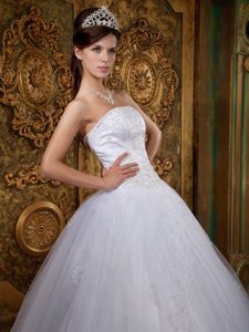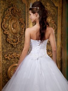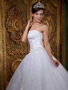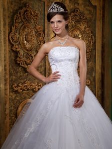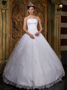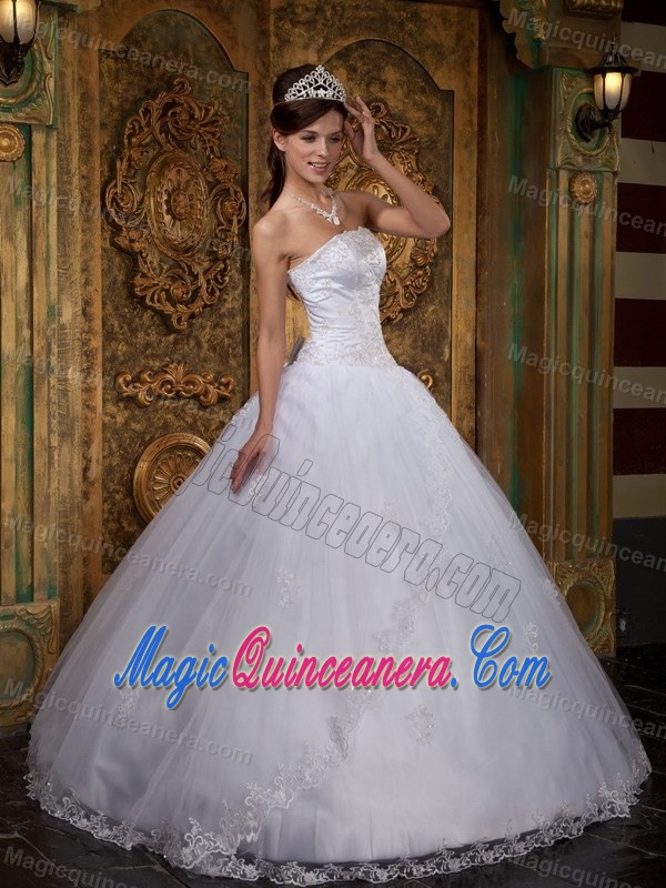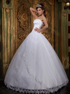sweet 16 dress with appliques, Lovely Lace Hem Decorate Strapless Dresses for a Quinceanera in White