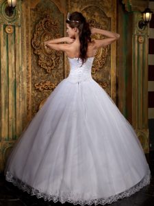 Lovely Lace Hem Decorate Strapless Dresses for a Quinceanera in White