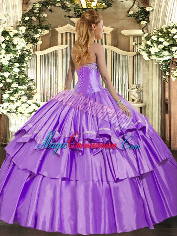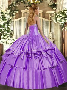 Lovely Lavender Lace Up Sweetheart Beading and Ruffled Layers 15th Birthday Dress Organza and Taffeta Sleeveless