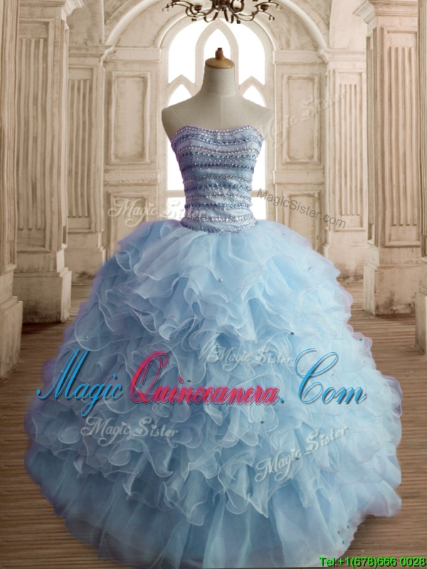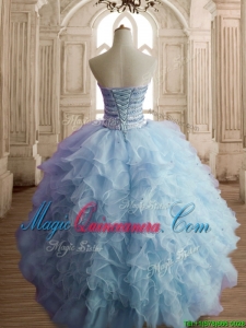 , Lovely Light Blue Big Puffy Quinceanera Dress with Beading and Ruffles