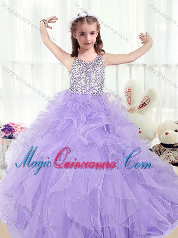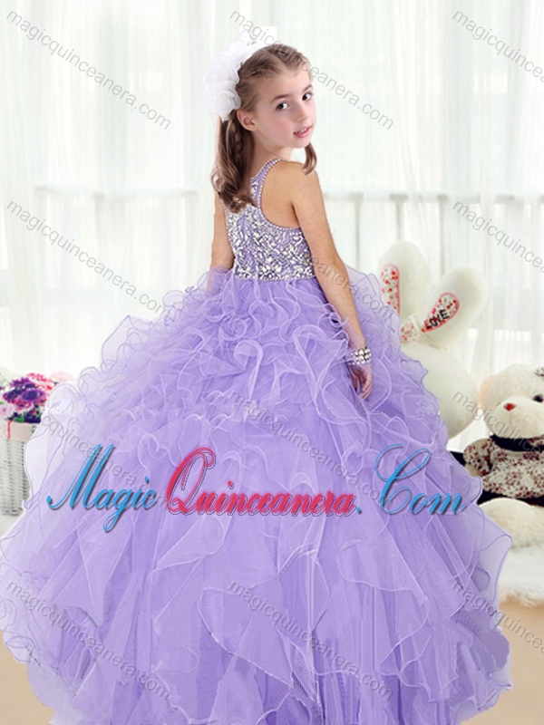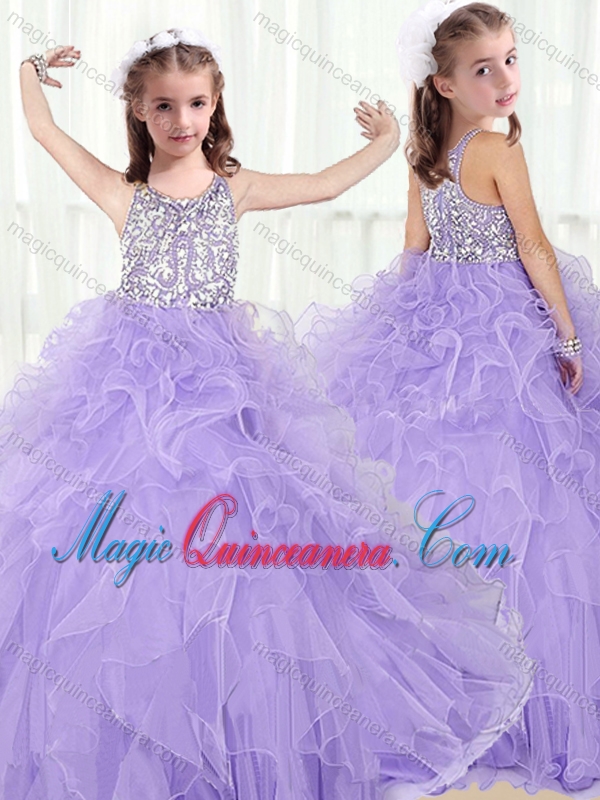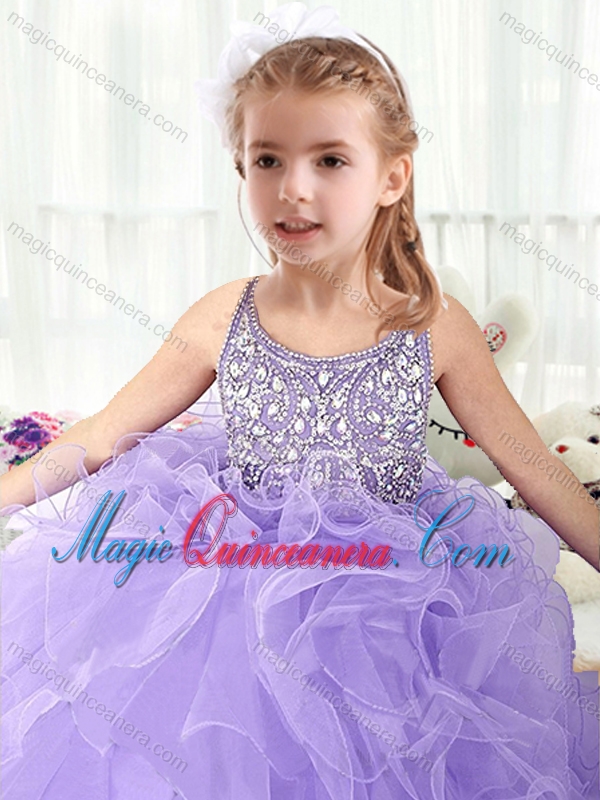 Lovely Scoop Lavender Little Girl Pageant Dresses with Beading and Ruffles