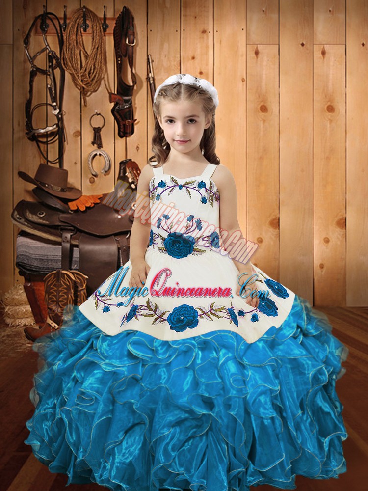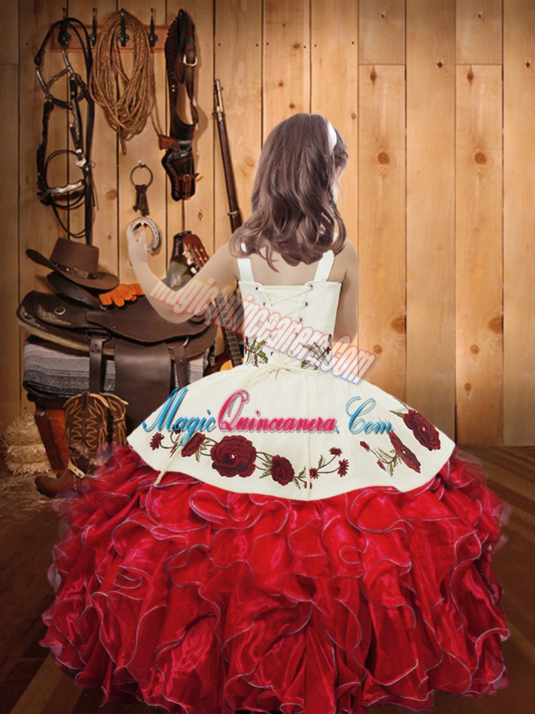 Lovely Sleeveless Embroidery and Ruffles Lace Up Pageant Dress Toddler