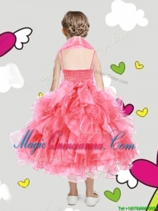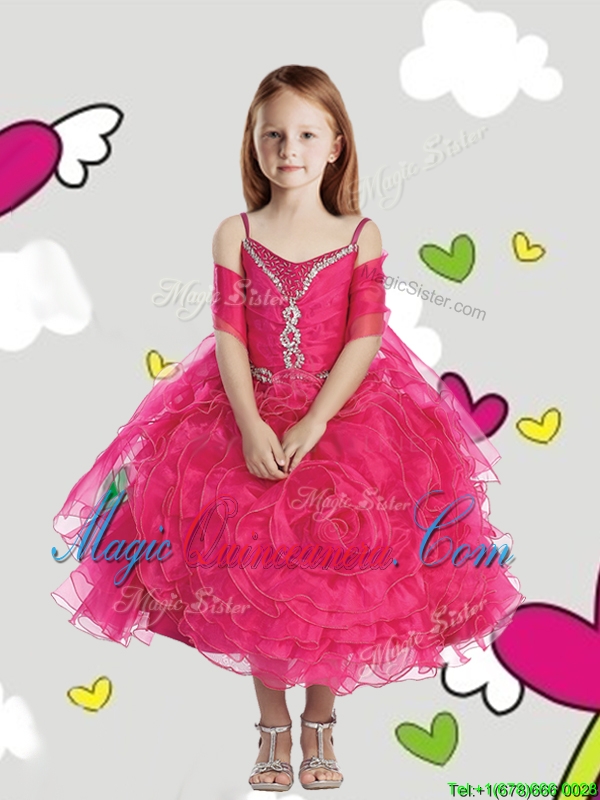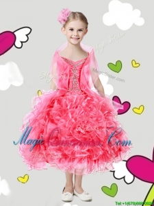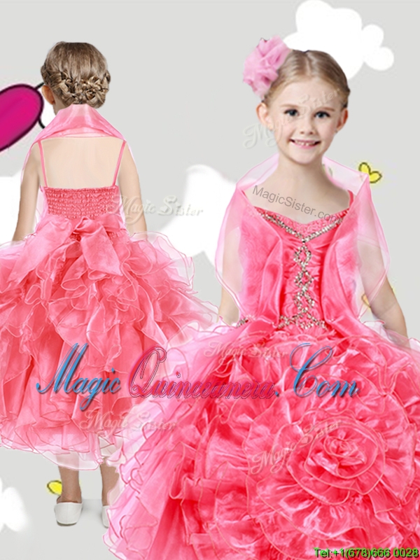 , Lovely Spaghetti Straps Little Girl Pageant Dress with Beading and Rolling Flowers