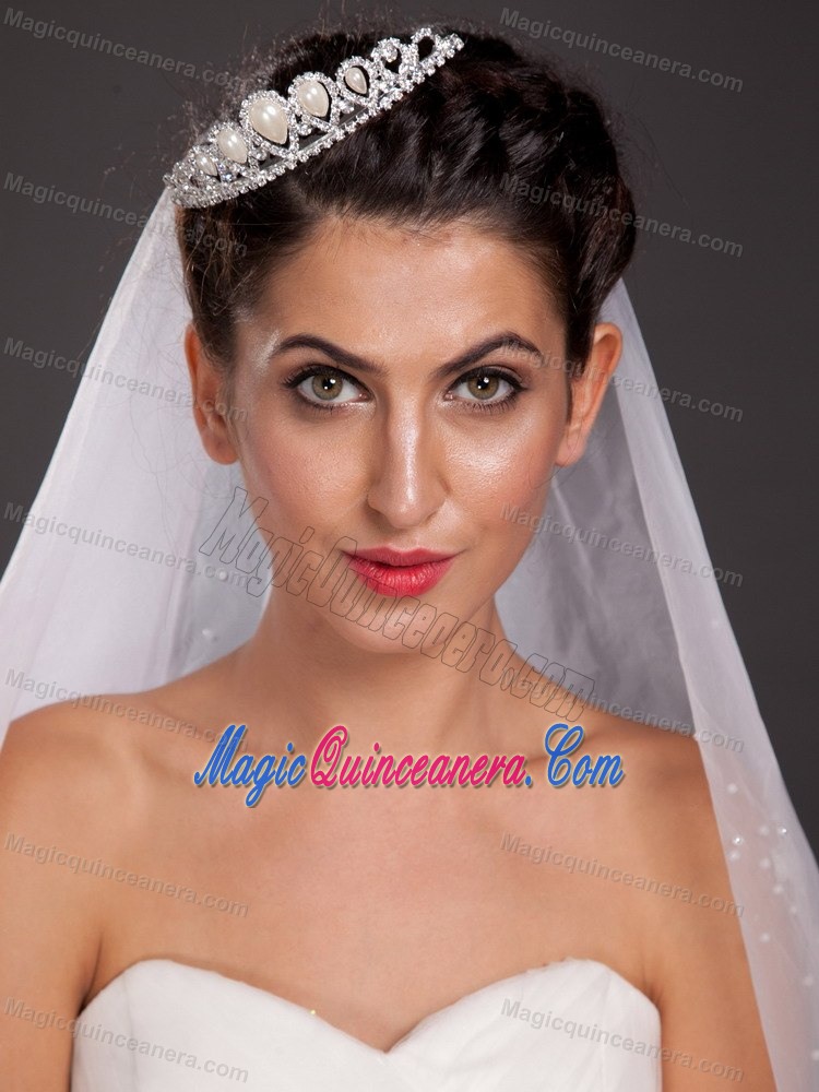 Lovely Tiara With Beading and Drop Pearl Decorate