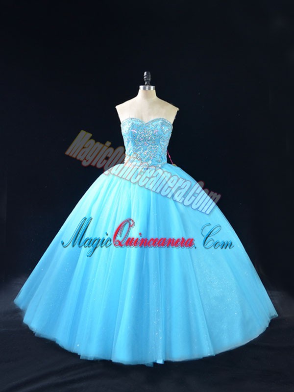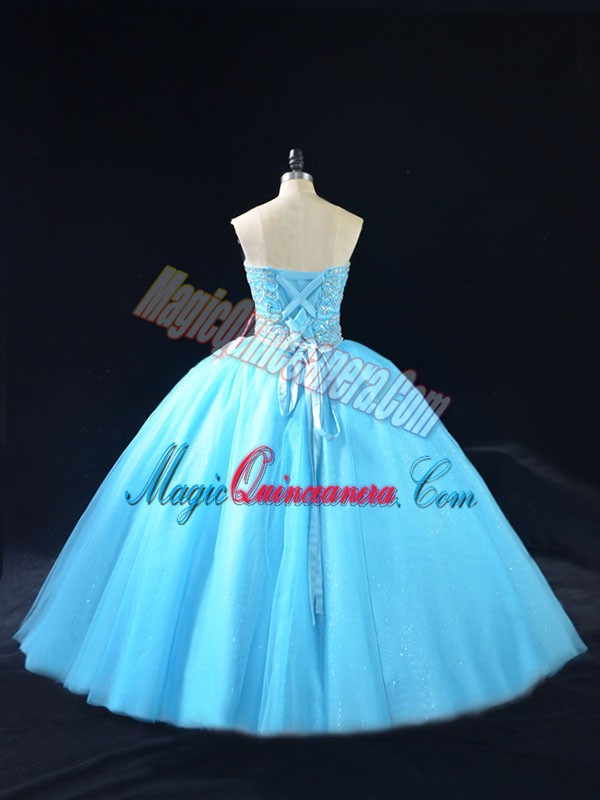 Low Price Baby Blue Quince Ball Gowns Sweet 16 and Quinceanera with Beading Sweetheart Sleeveless Lace Up