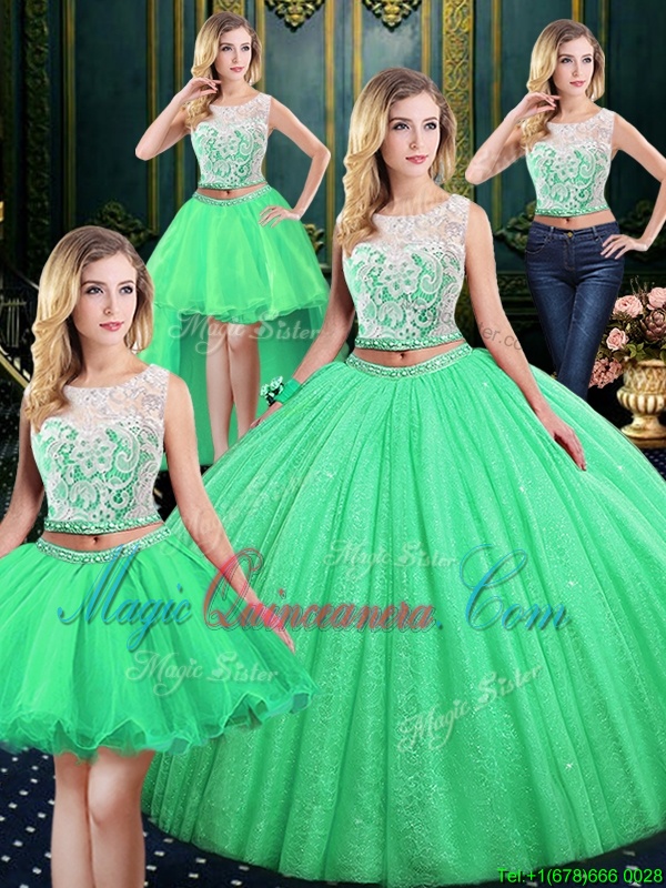 Four Piece Scoop Sleeveless Tulle and Sequined Quinceanera Dress Lace and Sequins Lace Up