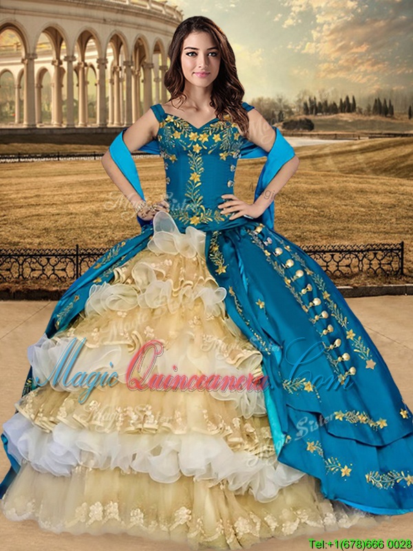 Low Price Multi-color Off The Shoulder Lace Up Appliques and Embroidery and Ruffled Layers Sweet 16 Dresses Sleeveless