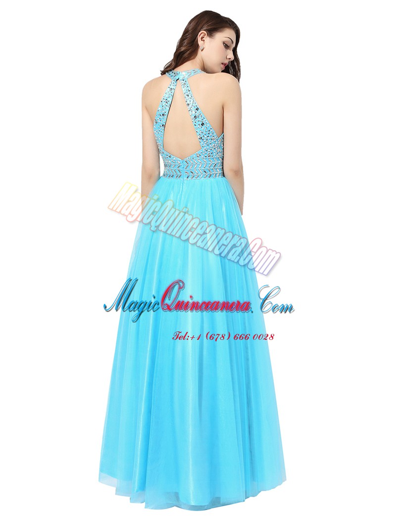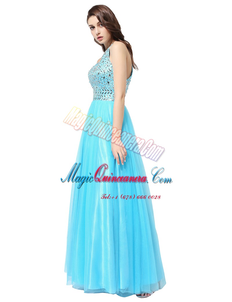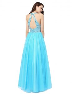 Low Price Scoop Sleeveless Zipper Mother Of The Bride Dress Aqua Blue Tulle