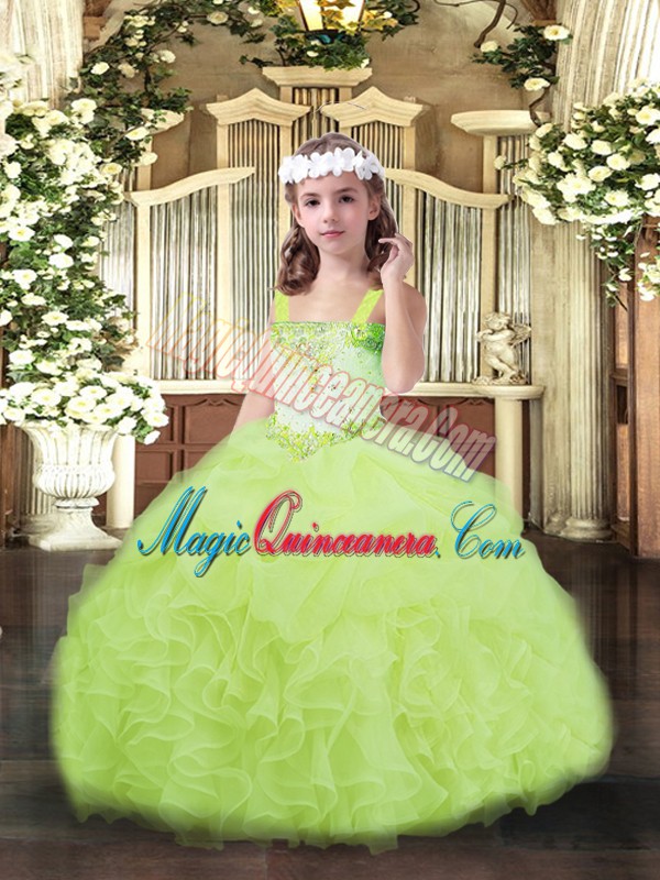 Low Price Yellow Green Ball Gowns Beading and Ruffles and Pick Ups Pageant Gowns For Girls Lace Up Organza Sleeveless Floor Length