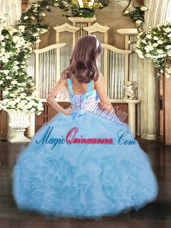 Blue Ball Gowns Beading and Ruffles Vestidos de Quinceanera Lace Up Organza Sleeveless