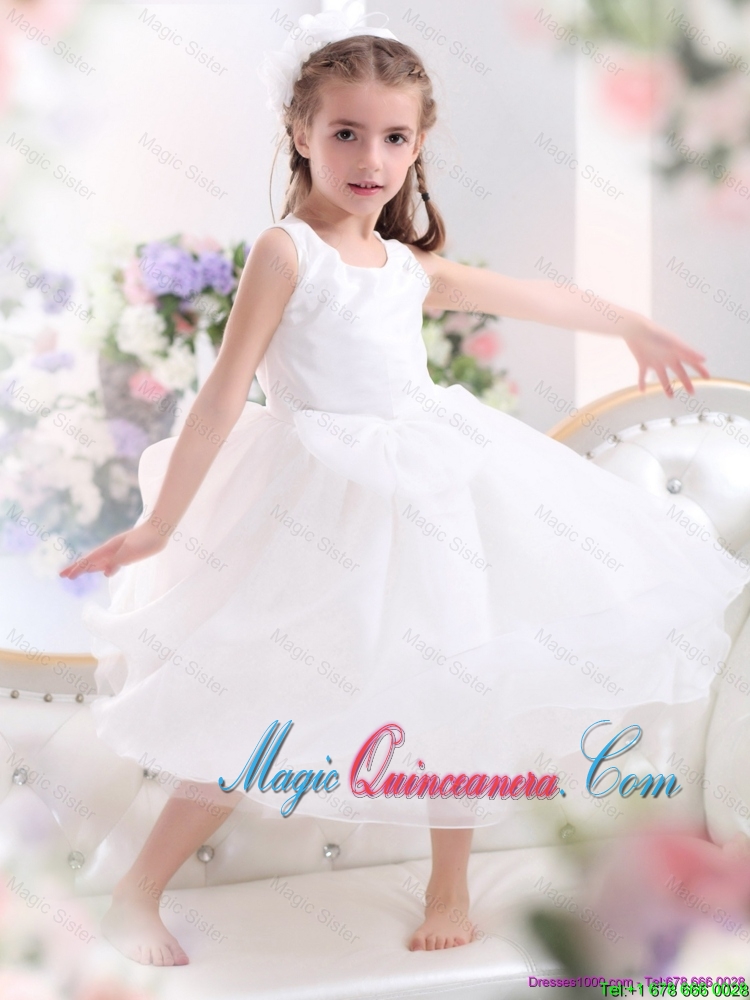 Luxurious 2016 Fall Scoop White Bowknot A Line Little Girl Pageant Dresses