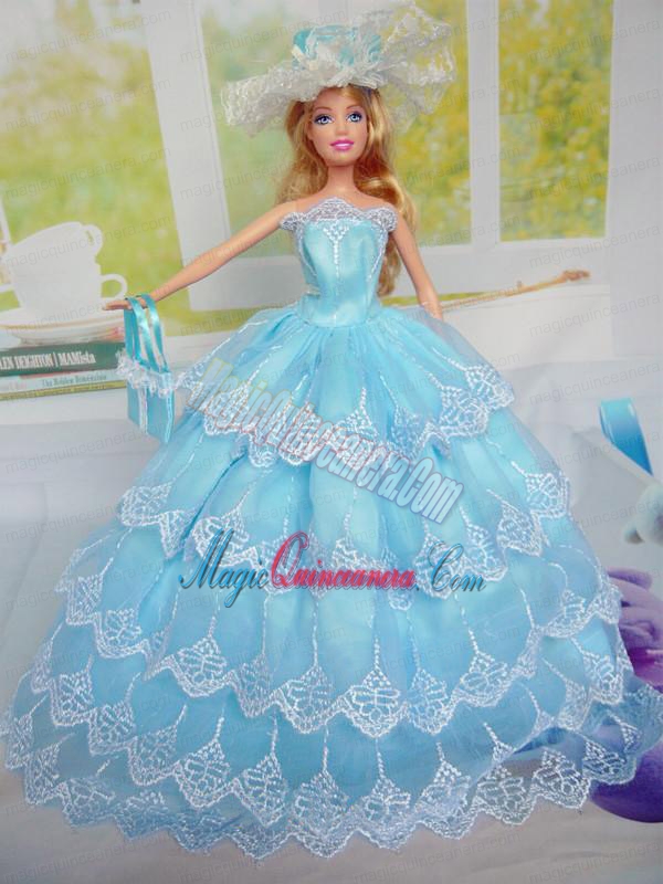 , Luxurious Baby Blue Party Clothes for Noble Barbie Doll Tulle