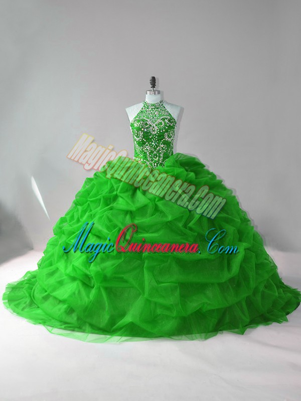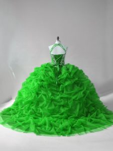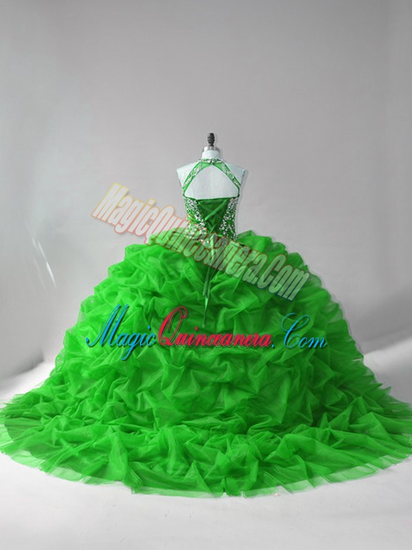 Luxurious Ball Gowns Sleeveless Green Vestidos de Quinceanera Court Train Lace Up