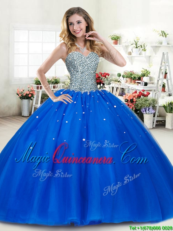 Luxurious Beaded Bodice Royal Blue Quinceanera Dress in Tulle