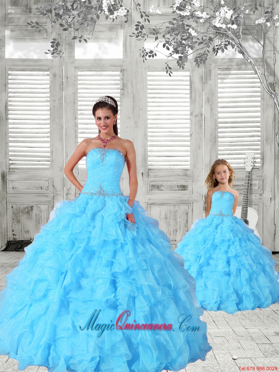 , Luxurious Beading and Ruching Princesita Dress in Aqua Blue for 2015