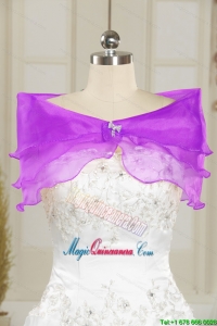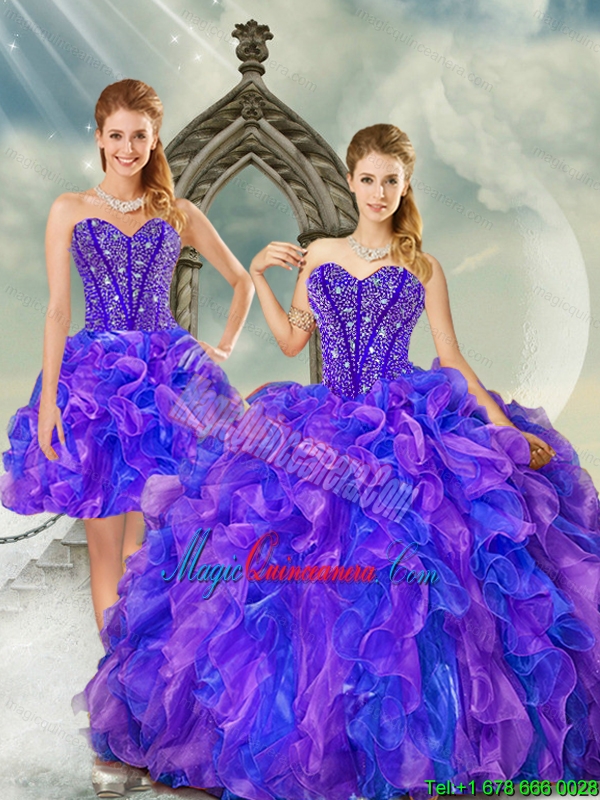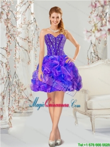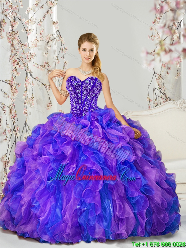 , Luxurious Beading and Ruffles Quince Dresses in Purple and Blue for 2015