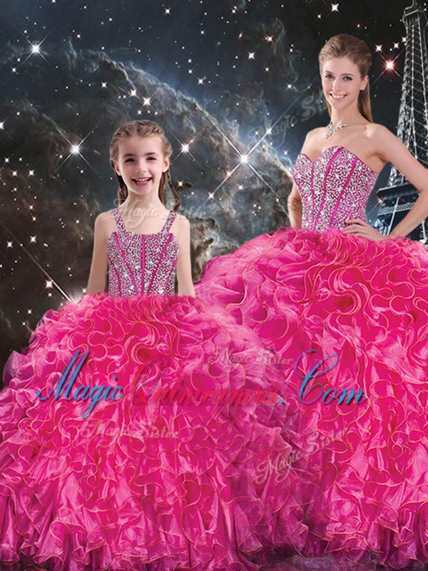 Luxurious Beading Princesita with Quinceanera Dresses in Hot Pink