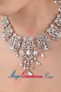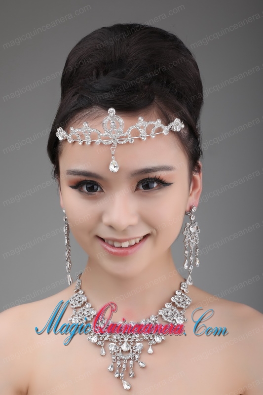 , Luxurious Crown and Necklace in Rhinestone and Alloy