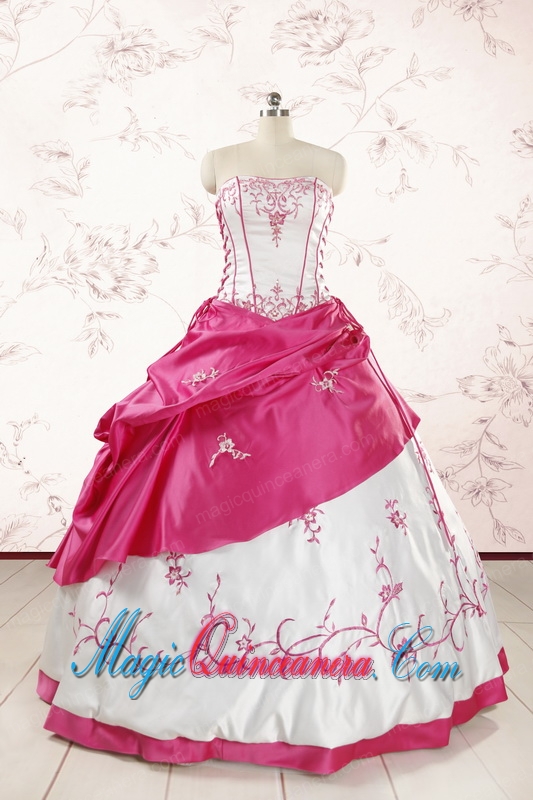 Luxurious Embroidery Sweet 15 Dresses in White and Hot Pink