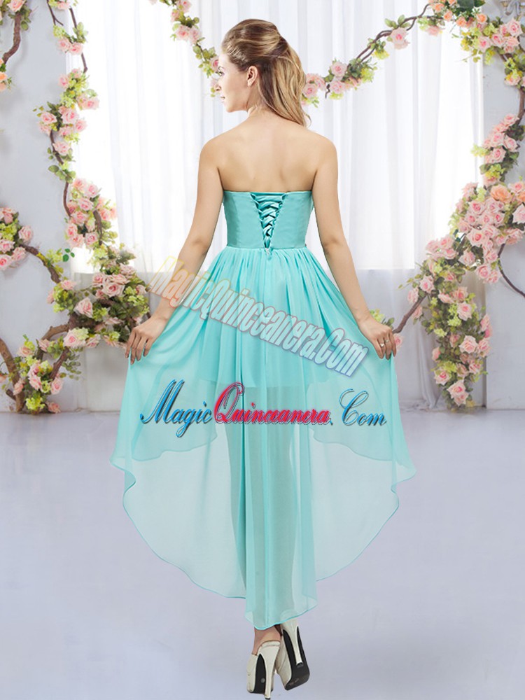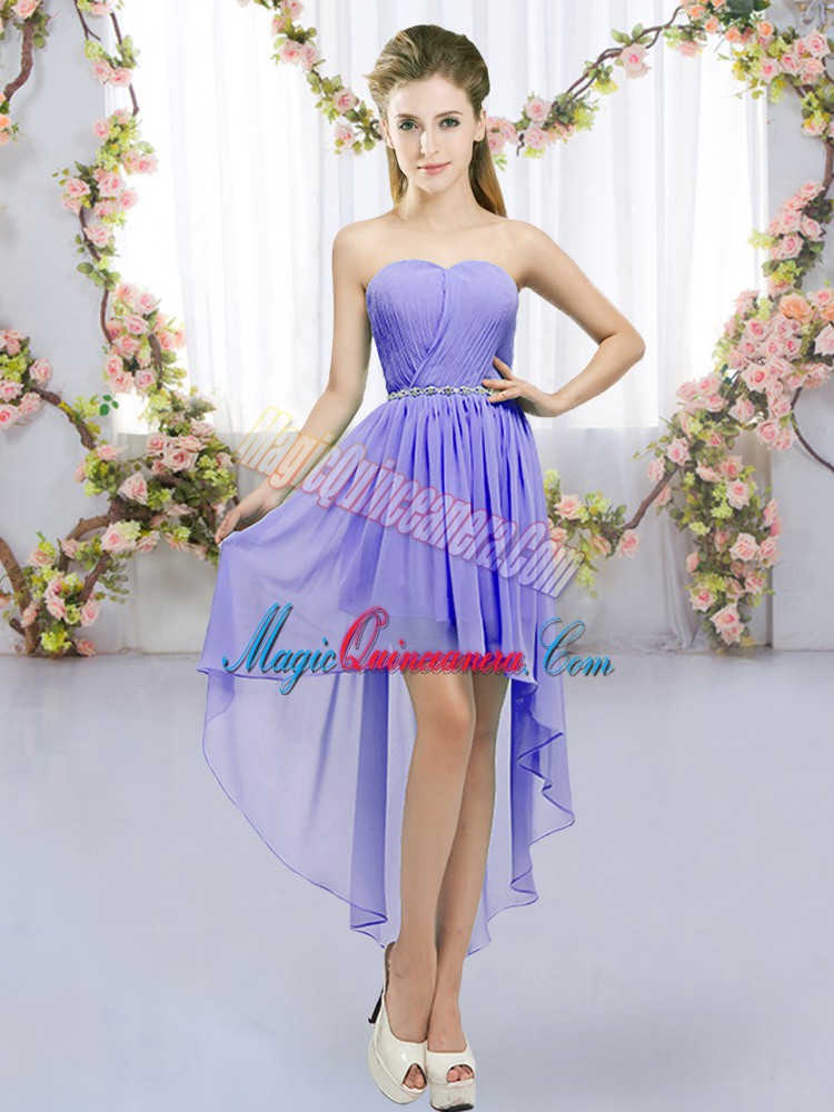 , Luxurious Empire Dama Dress Lavender Sweetheart Chiffon Sleeveless High Low Lace Up