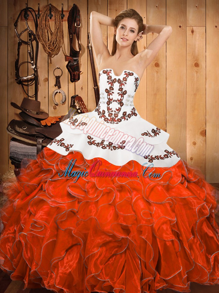 Luxurious Floor Length Rust Red 15th Birthday Dress Strapless Sleeveless Lace Up
