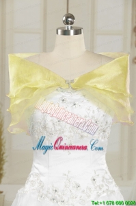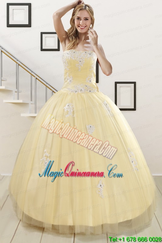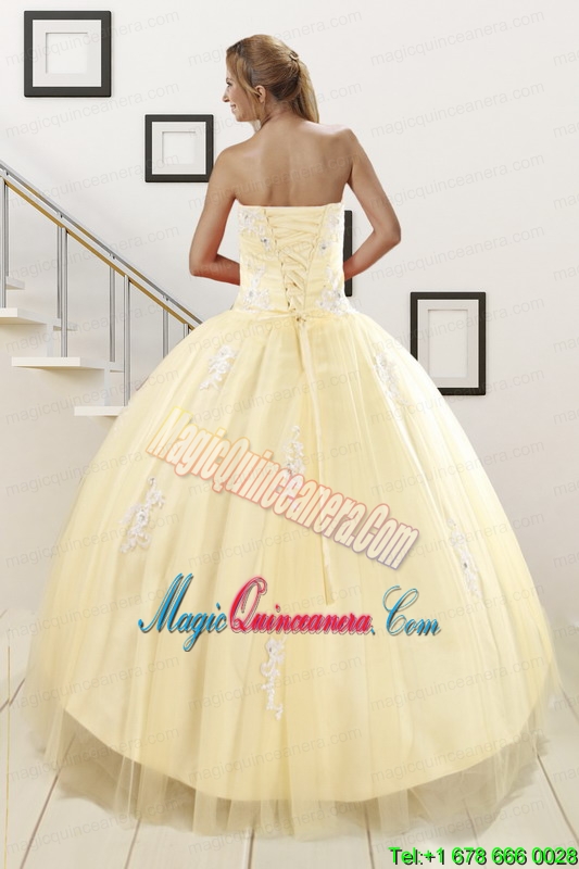 Luxurious Light Yellow Sweet 16 Dresses with White Appliques