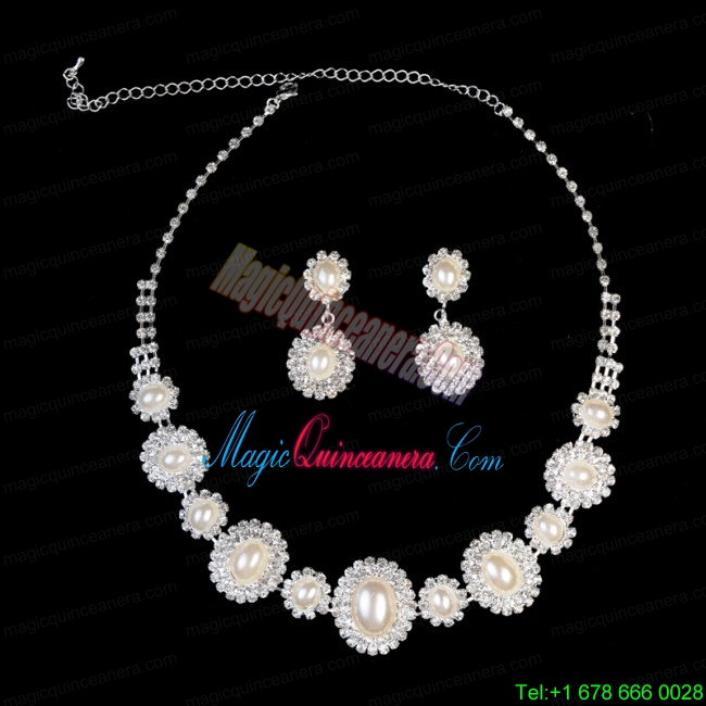 , Luxurious Pearl Ladies Jewelry Set Including Necklace And Earrings