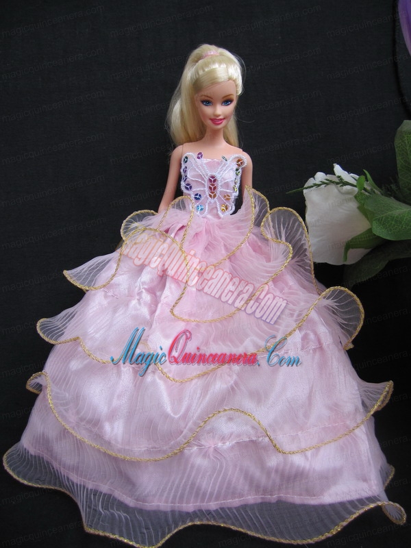 Luxurious Ruffled Layeres Baby Pink Handmade Summer Wear Dress Clothes Gown For Barbie Doll