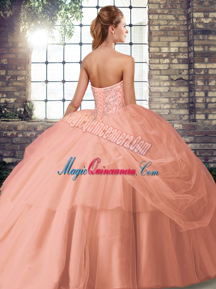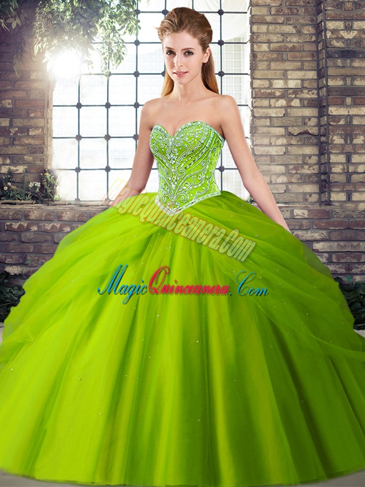 , Luxurious Sleeveless Brush Train Beading and Pick Ups 15 Quinceanera Dress
