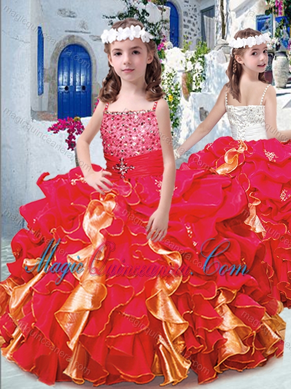 , Luxurious Spaghetti Straps Little Girl Pageant Dresses with Beading and Ruffles
