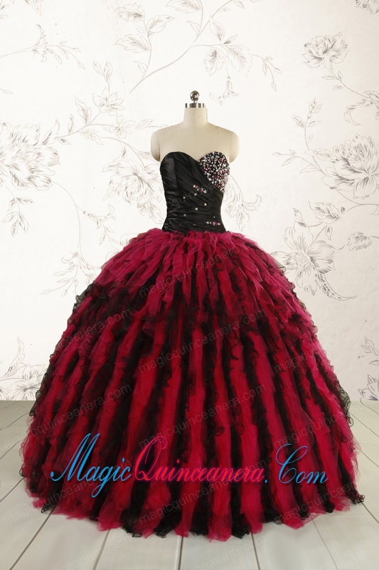 Luxurious Sweetheart Beading Quinceanera Dresses in Red and Black