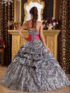 Luxurious Sweetheart Zebra Printed Quinceanera Party Dress with Sash