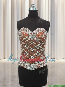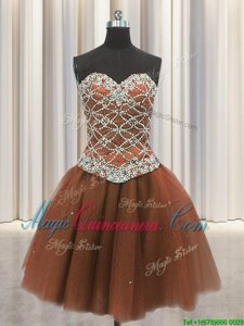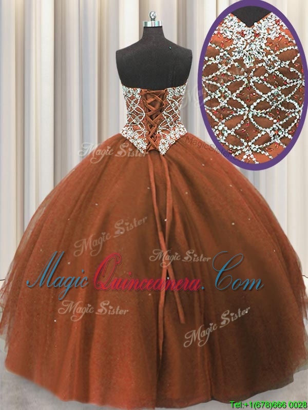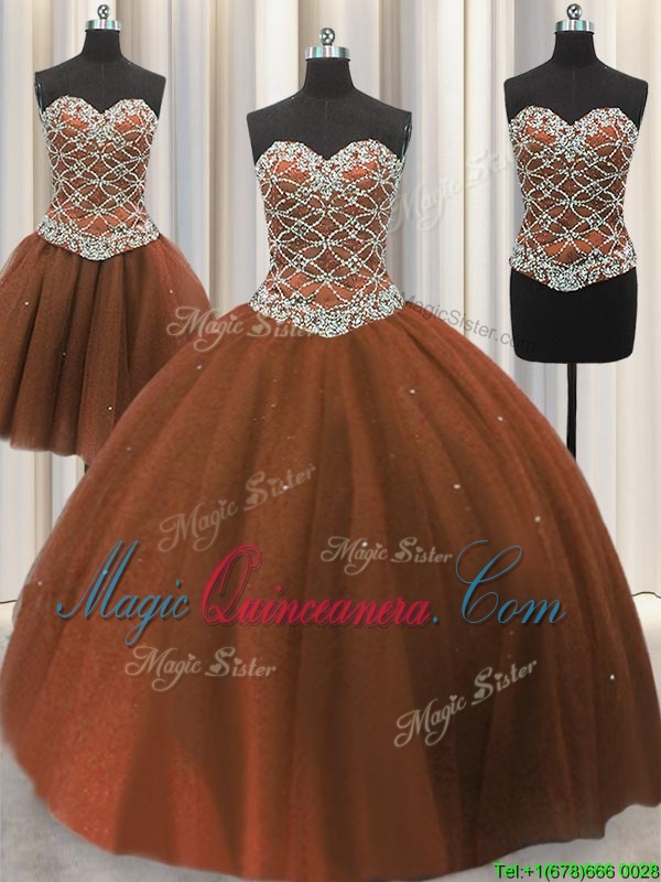 Luxurious Three Piece Brown Sleeveless Floor Length Beading and Sequins Lace Up 15 Quinceanera Dress