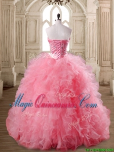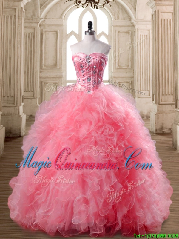 Luxurious Watermelon Red Sweet 16 Dress with Beading and Ruffles